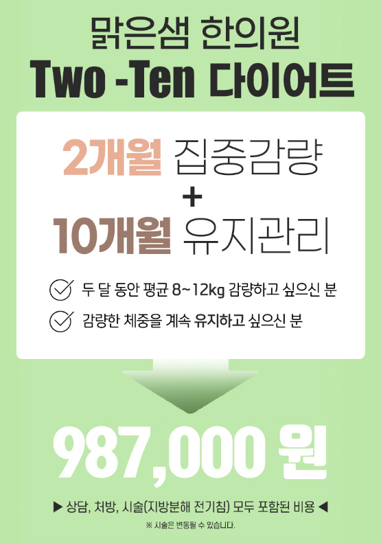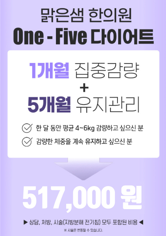 ※ 다이어트 프로그램 끝난 분들만 월 1회 한하여 처방이 가능합니다. (정가대비 40% 할인) |